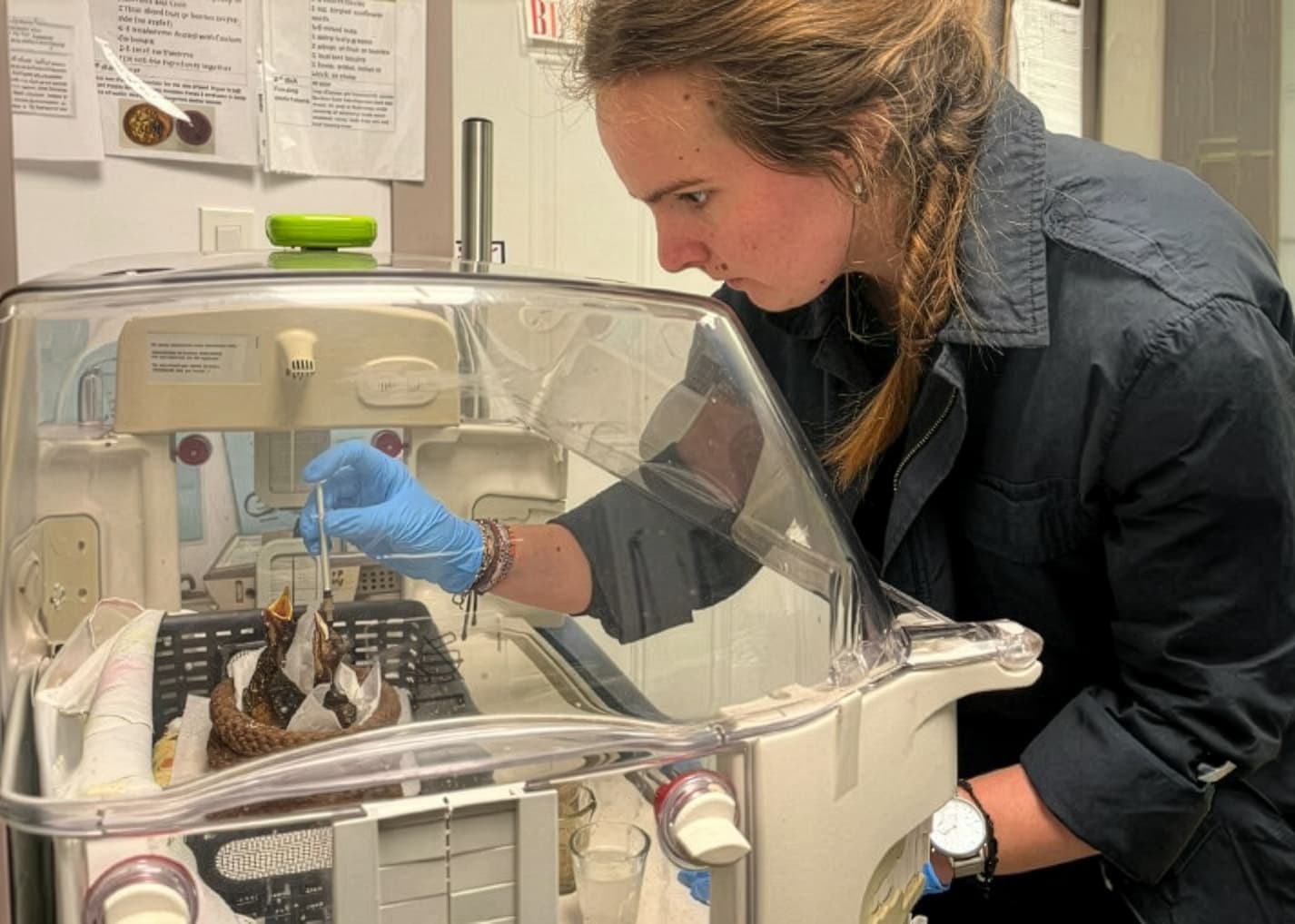The current medical facility is very much a hospital and the mammals and birds are very much patients. As far as possible, they are extended the same courtesies a human patient would receive because privacy, peace, and quiet are essential to wildlife recovery. For this reason, we don’t allow the general public access to our patients in the hospital.